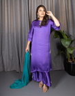 Our top with side pockets and comfort fit pants, featuring intricate chaand baali motifs, paired with a delicate organza dupatta for a refined look.